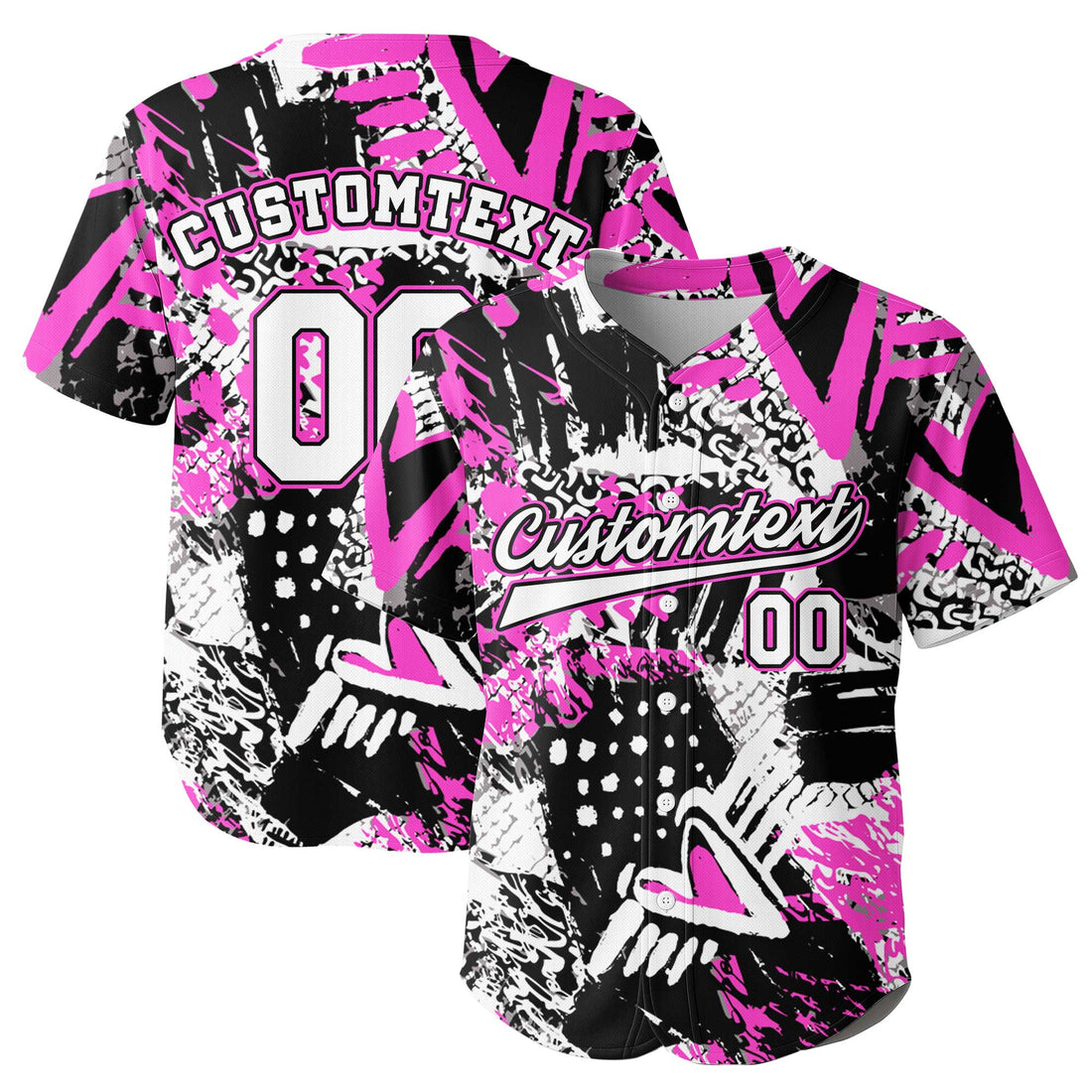 Custom Pink Ink Brush Stroke Pattern Baseball Jersey