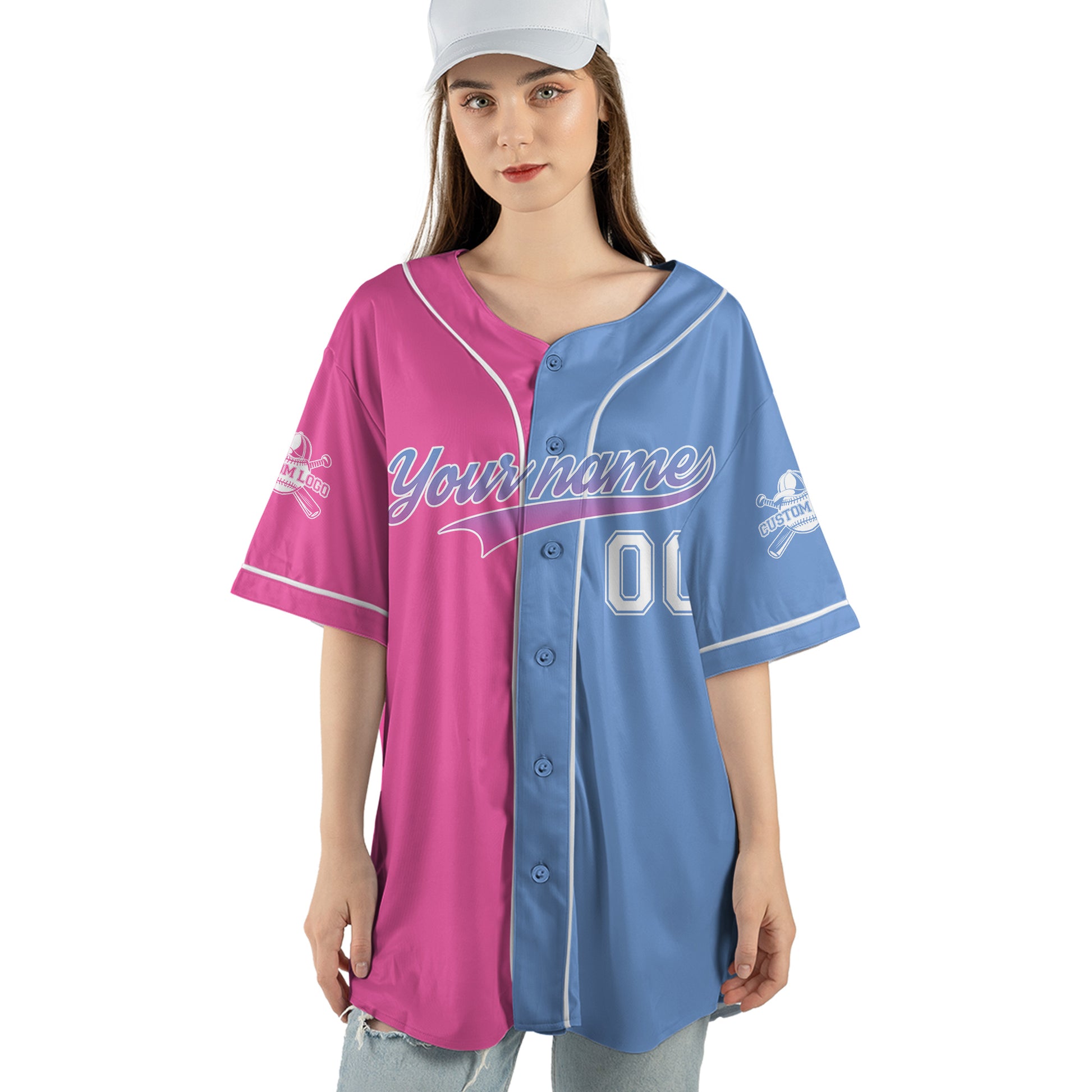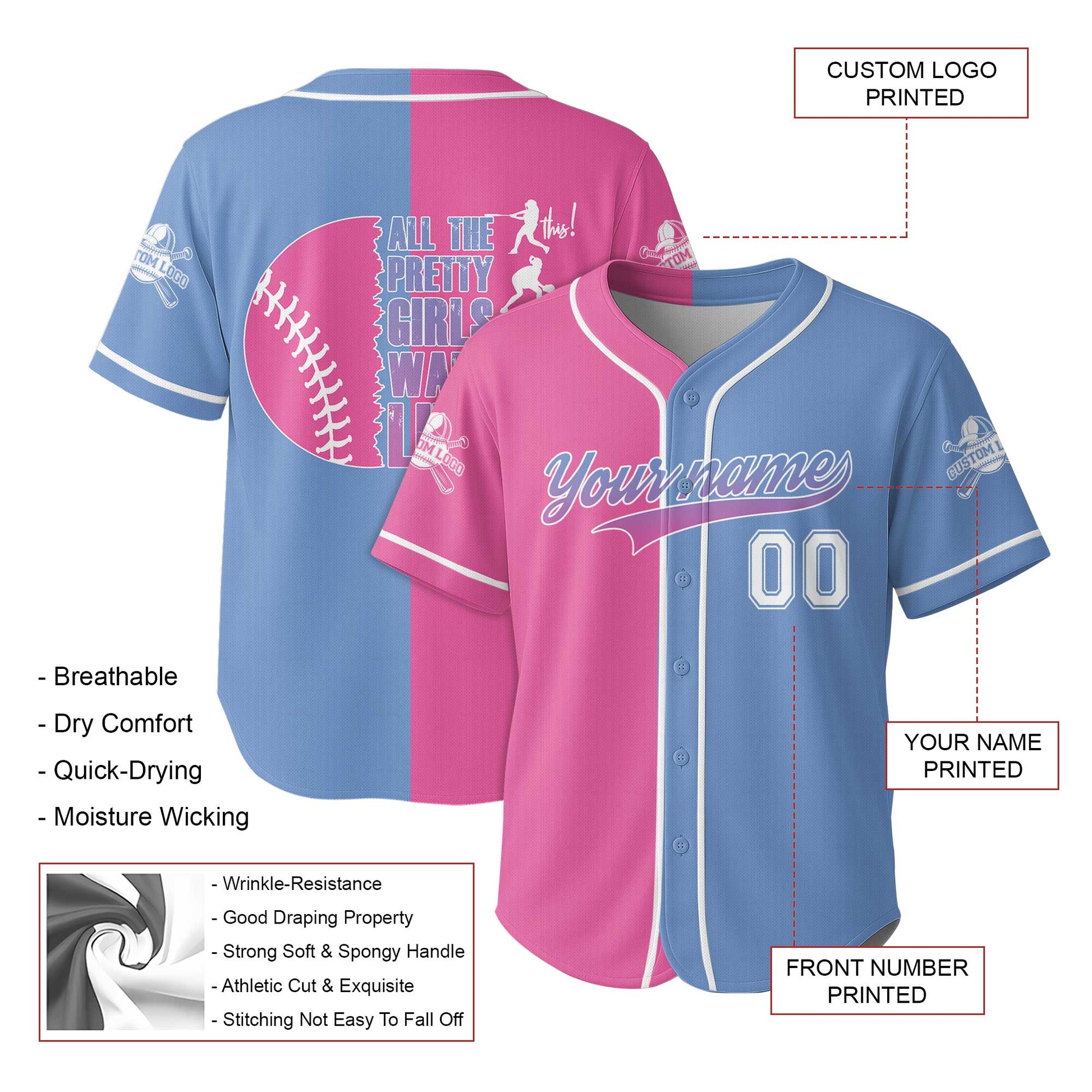 All The Pretty Girls Walk Like This - Custom Blue and Pink Baseball Jersey