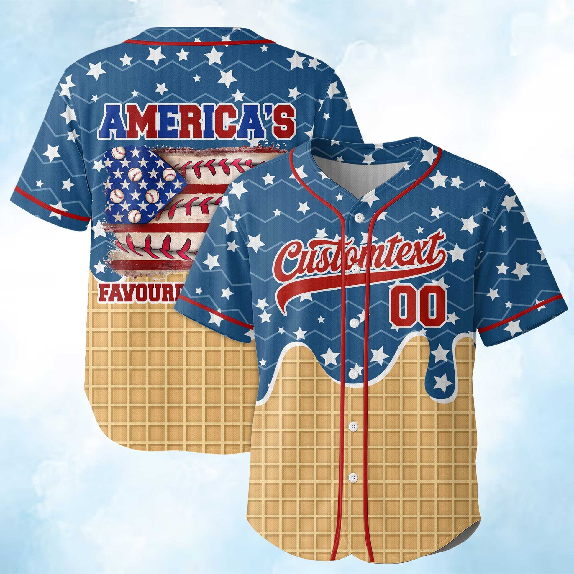 America's Favourite Pastime - Custom 4th Of July Ice Cream Baseball Jersey