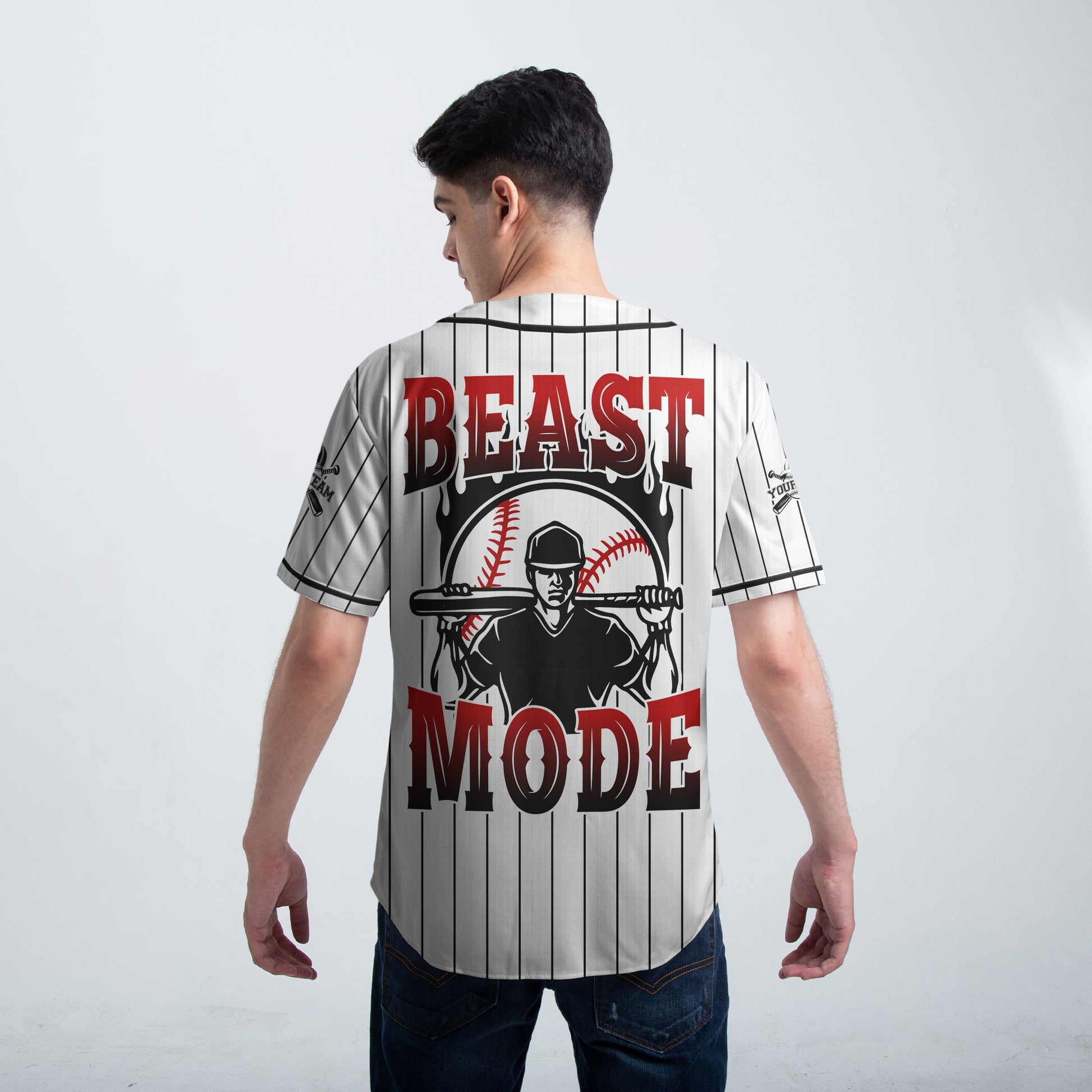 BEAST MODE - Custom White with Black Stripes Baseball Jersey