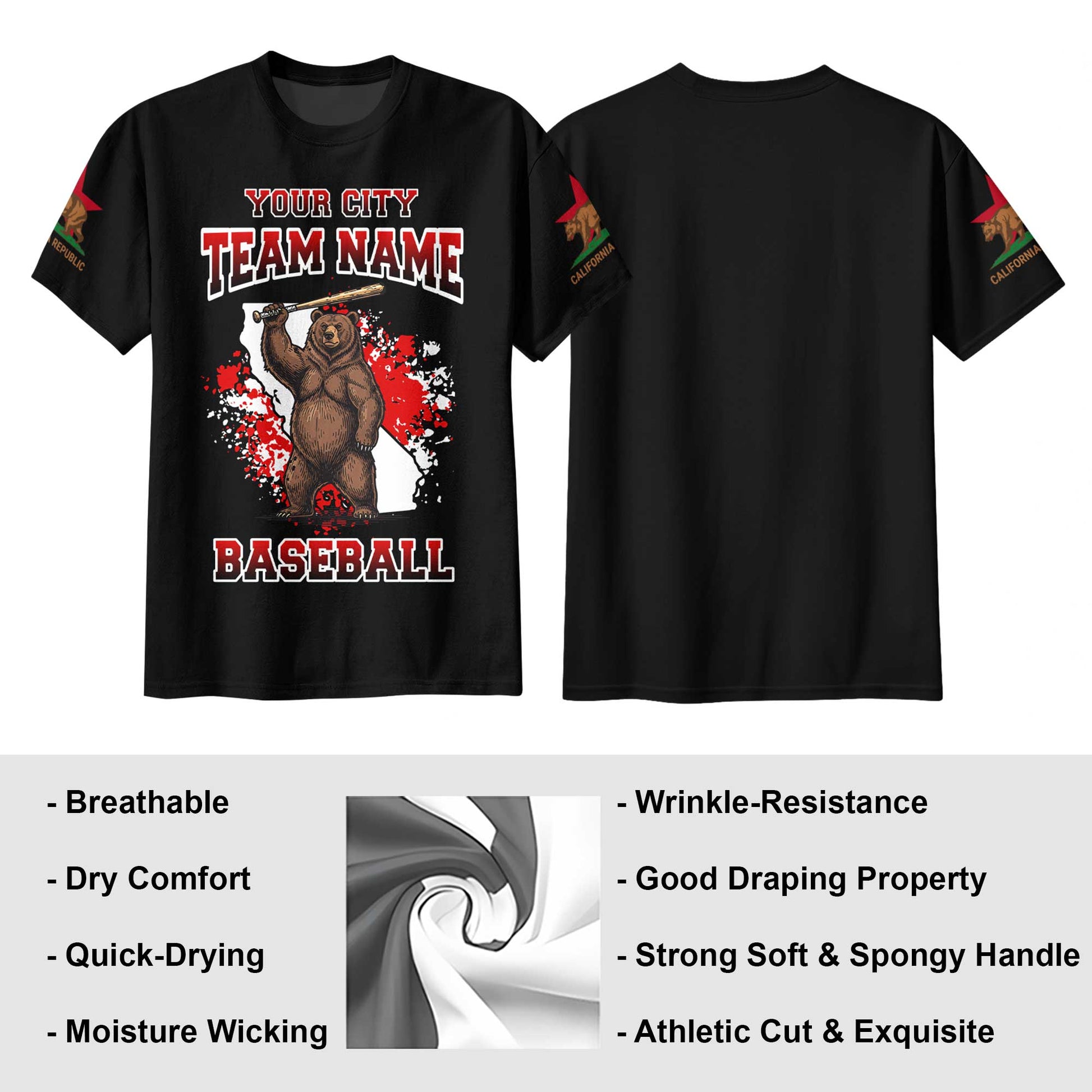 California Baseball Team - Black White Baseball T-Shirt