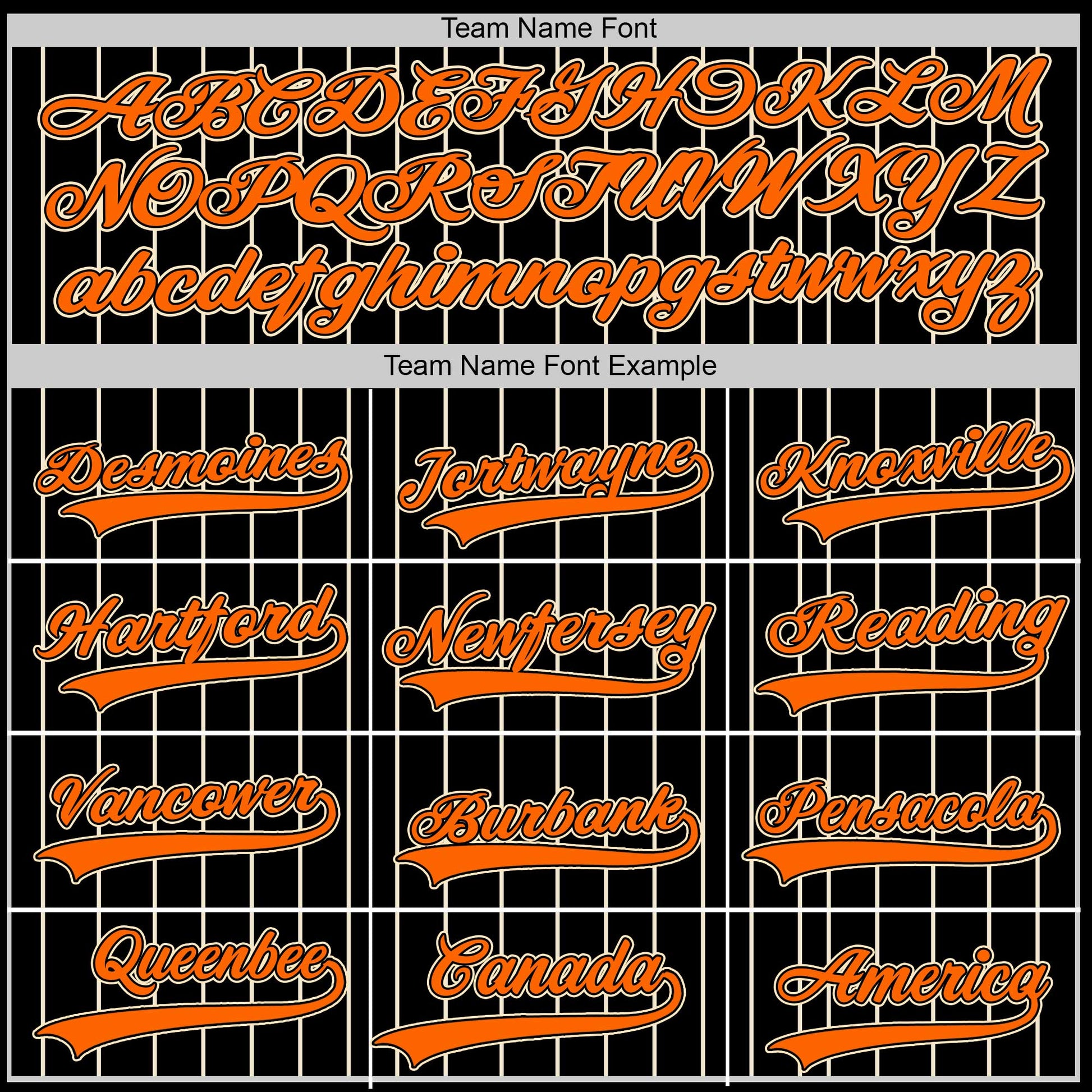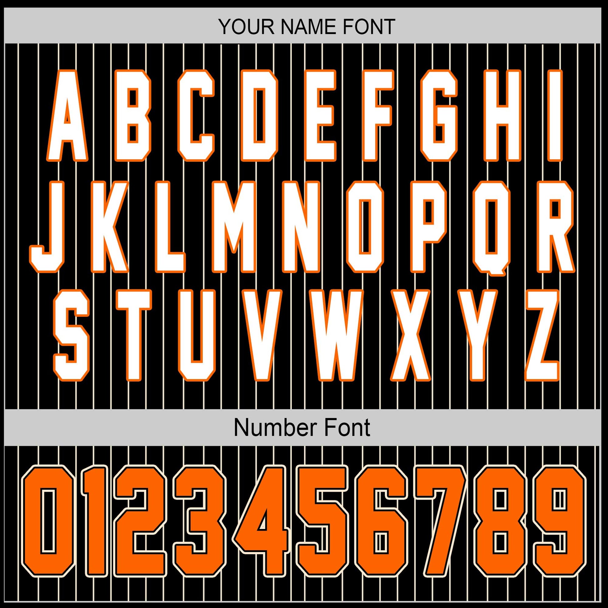 Custom Black Pinstripe Baseball Jersey – Orange Trim & Vintage Team Script