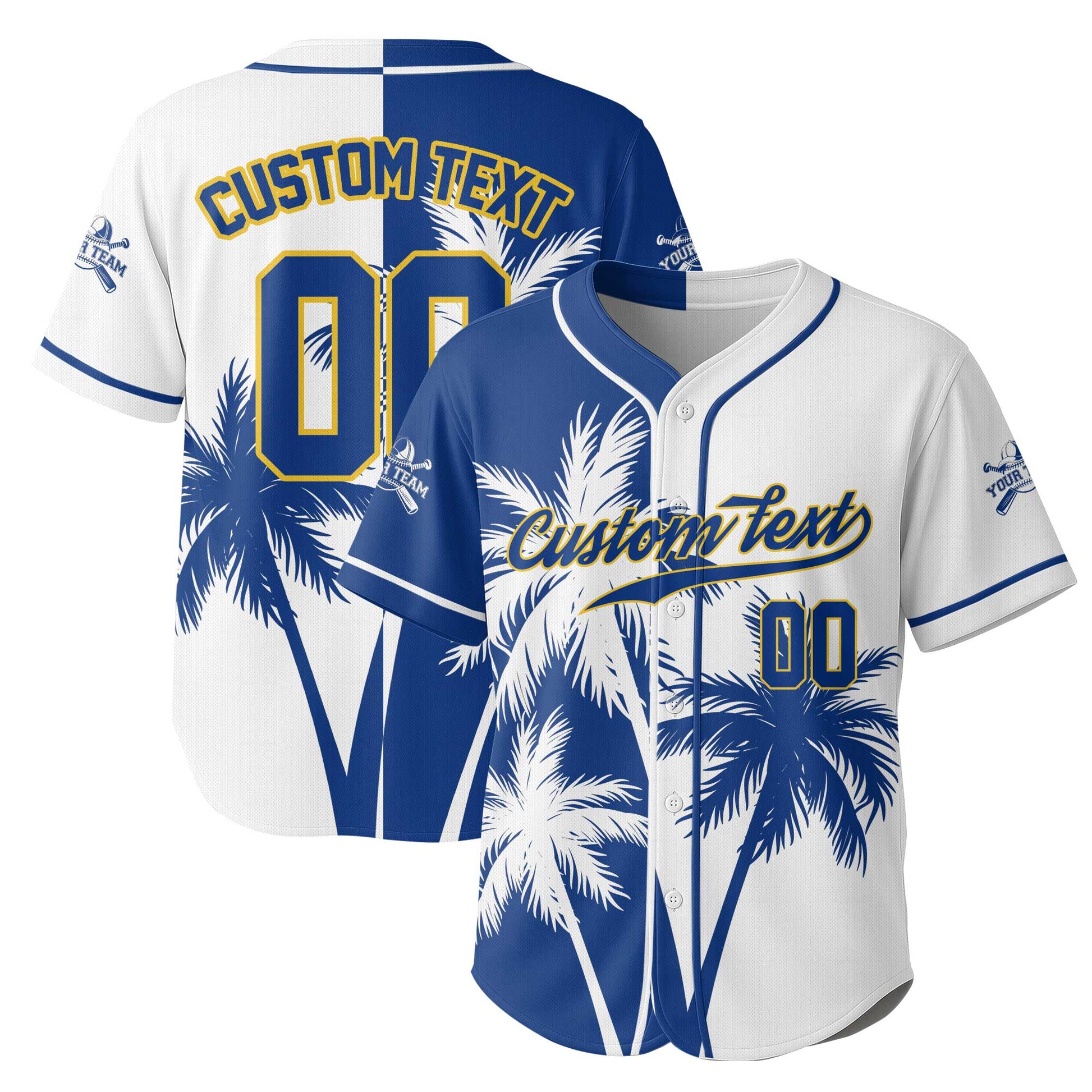 Custom Hawaii Coconut Tree Pattern Baseball Jersey With Team Name and Number