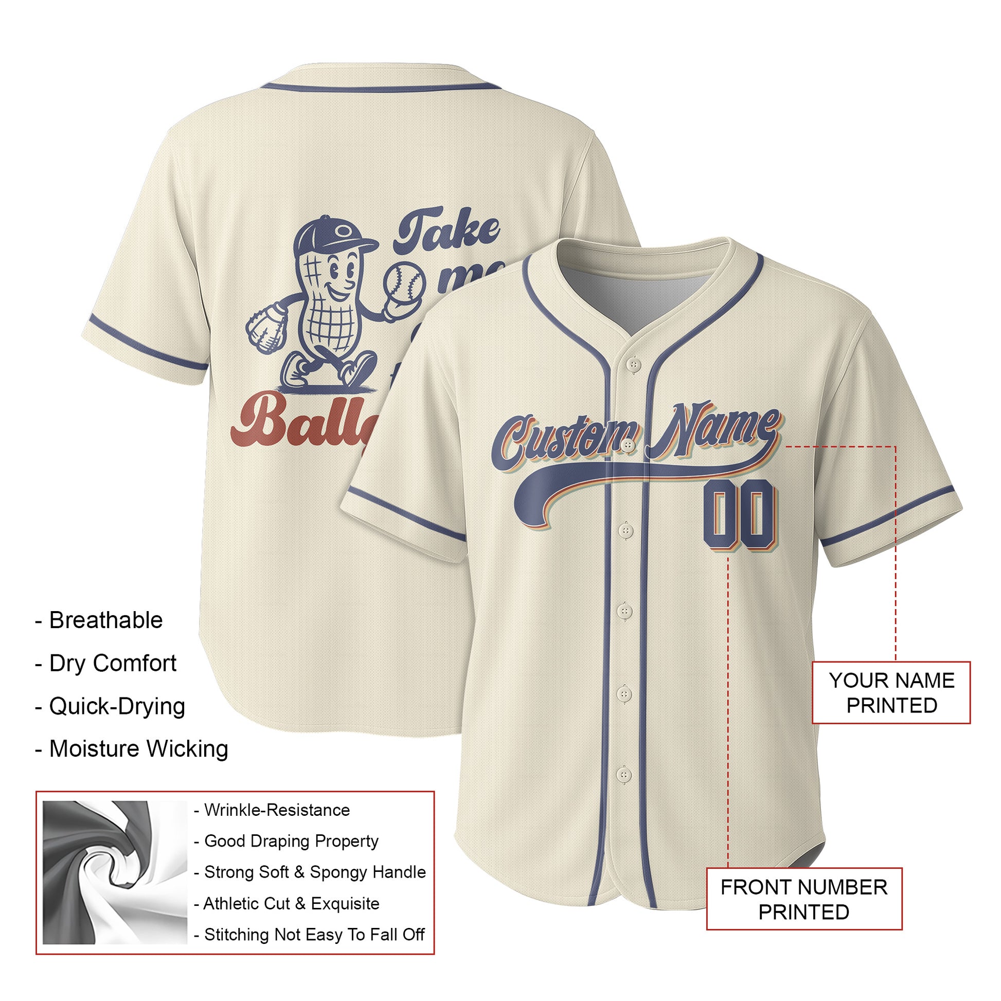 Custom Name Custom Number - Cream Retro Take Me Out To The Ball Game - Basbeall Jersey Lovers