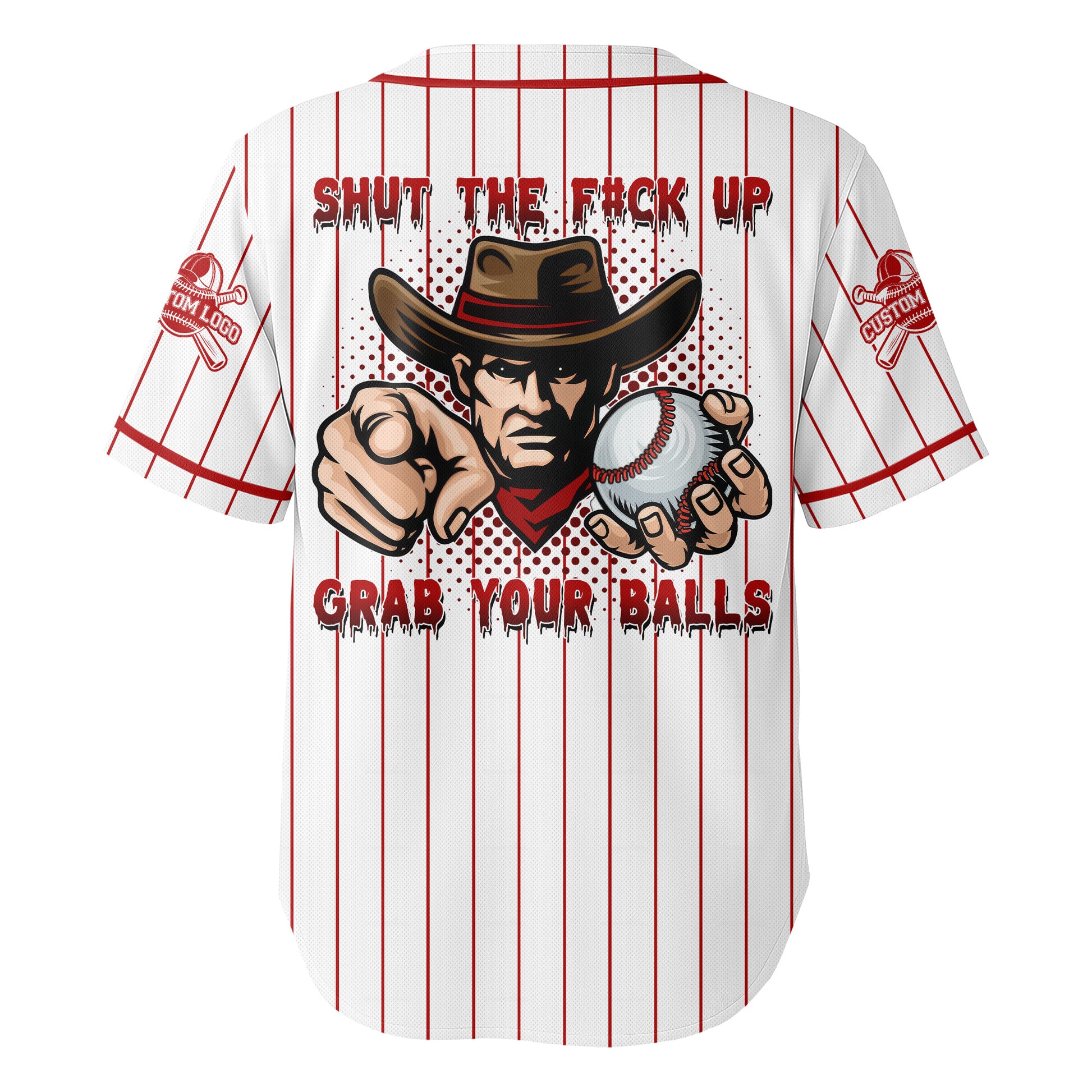Custom Red Striped Baseball Jersey - Go Grab Your Balls