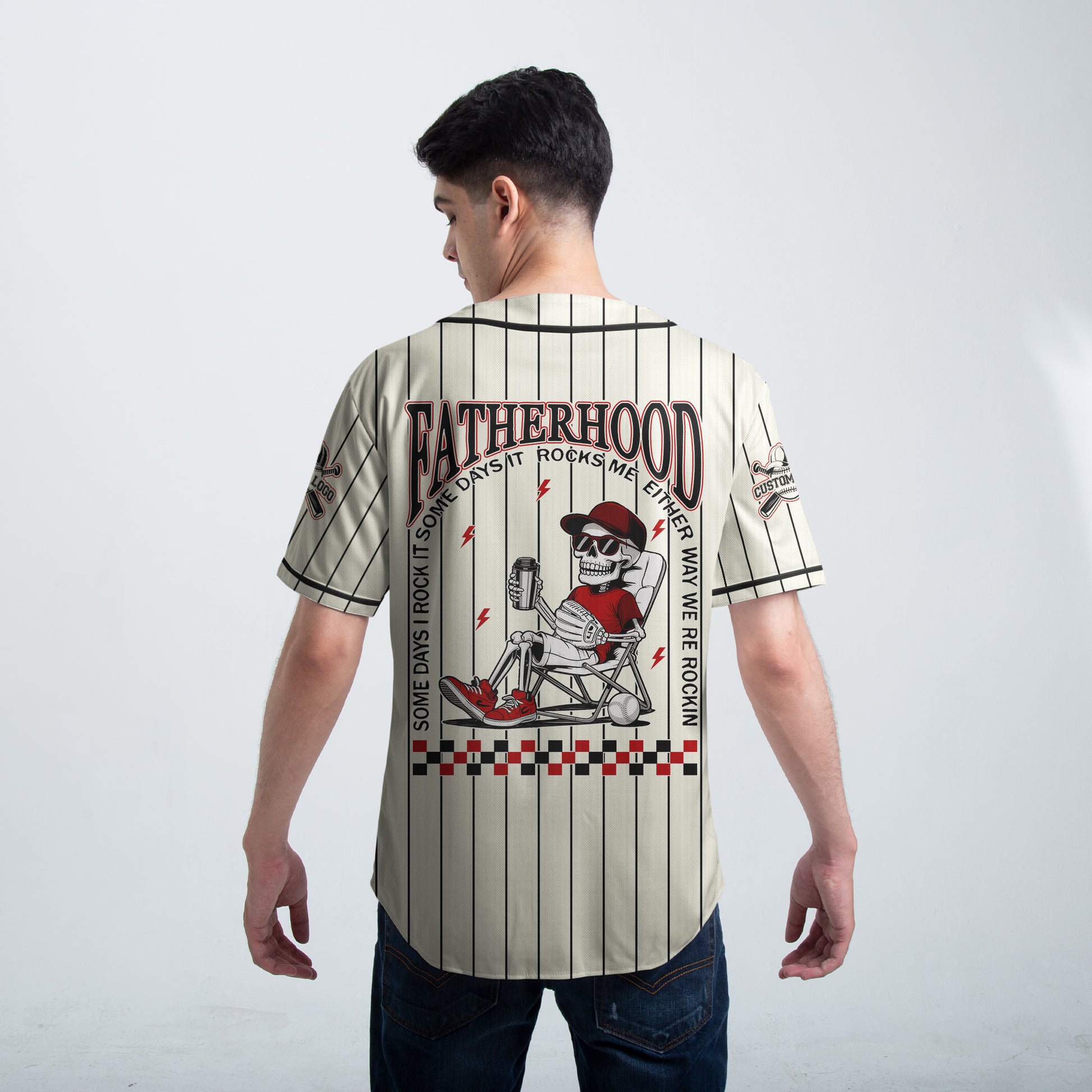 FATHERHOOD - Some Days I Rock It, Some Days It Rocks Me, Either Way We're Rockin - Custom Cream and Black Stripe Baseball Jersey