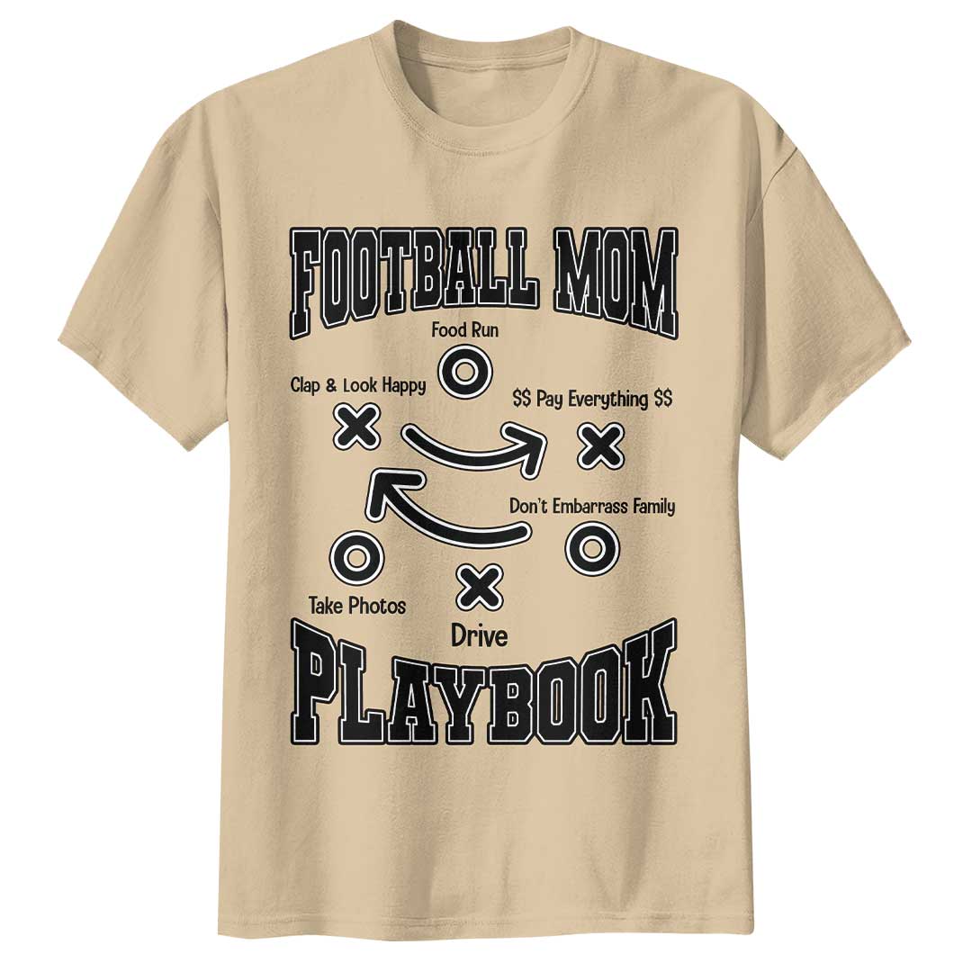 Football Mom Playbook - Sand and White Football Tshirt For Mom