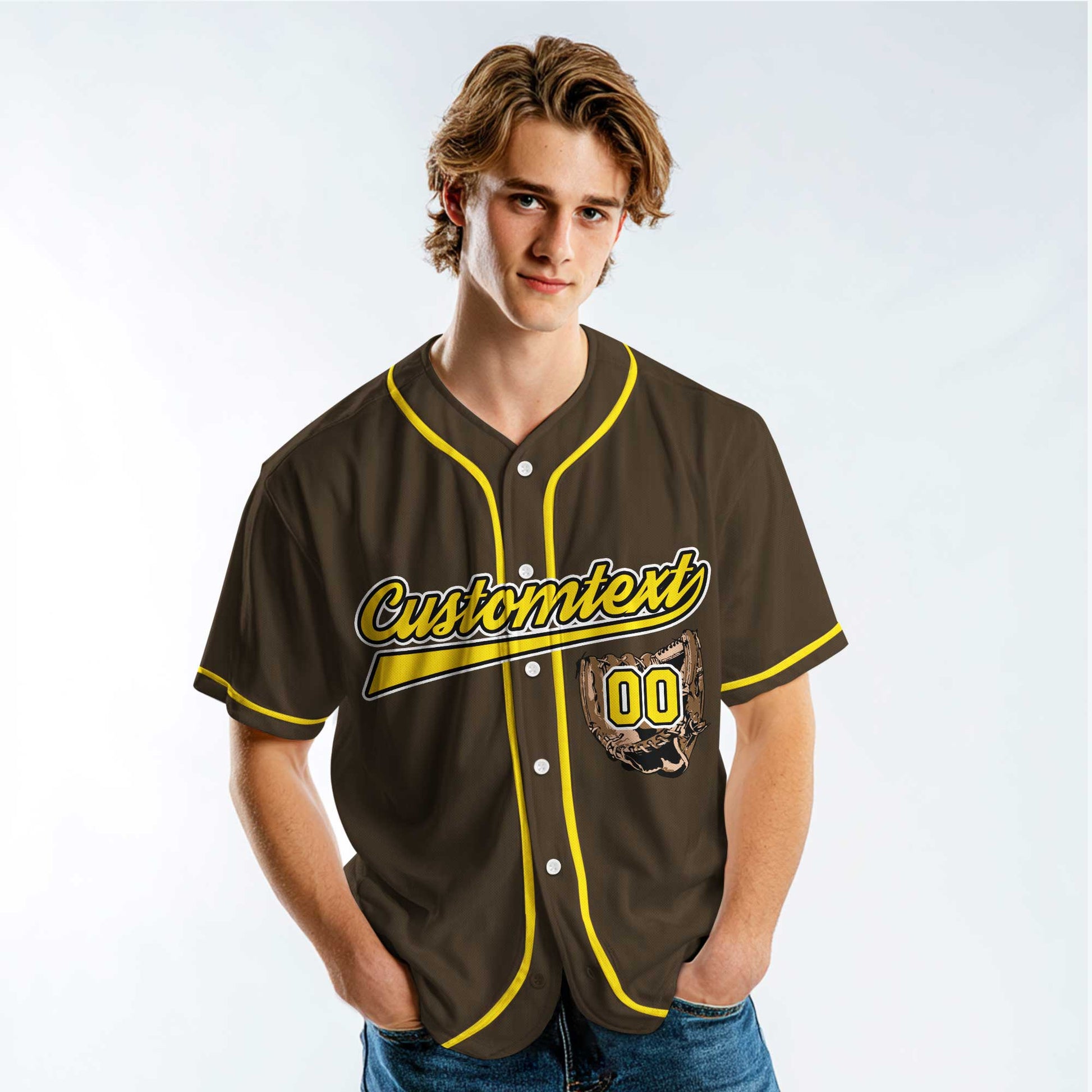 Game Day Batter Batter Swing - Custom Brown Yellow Baseball Jersey