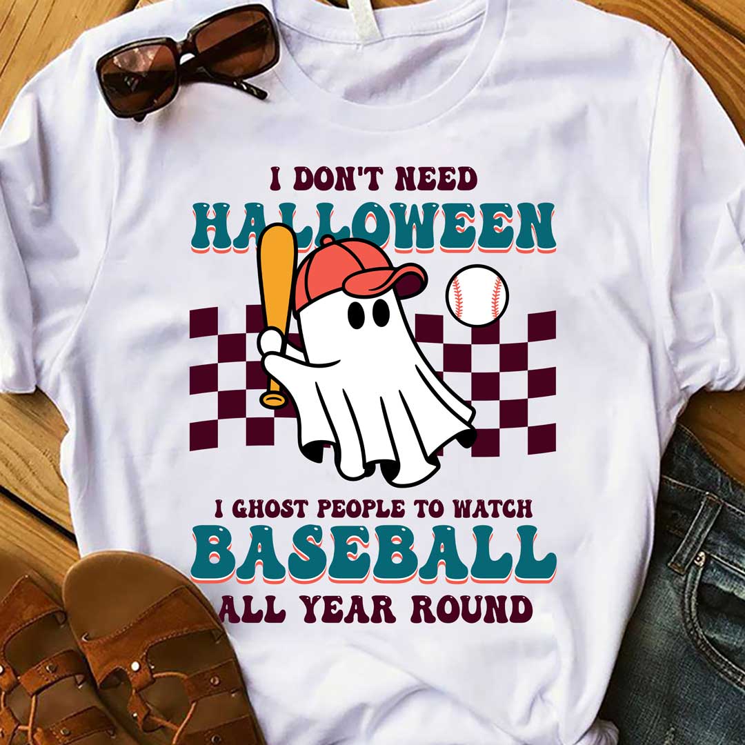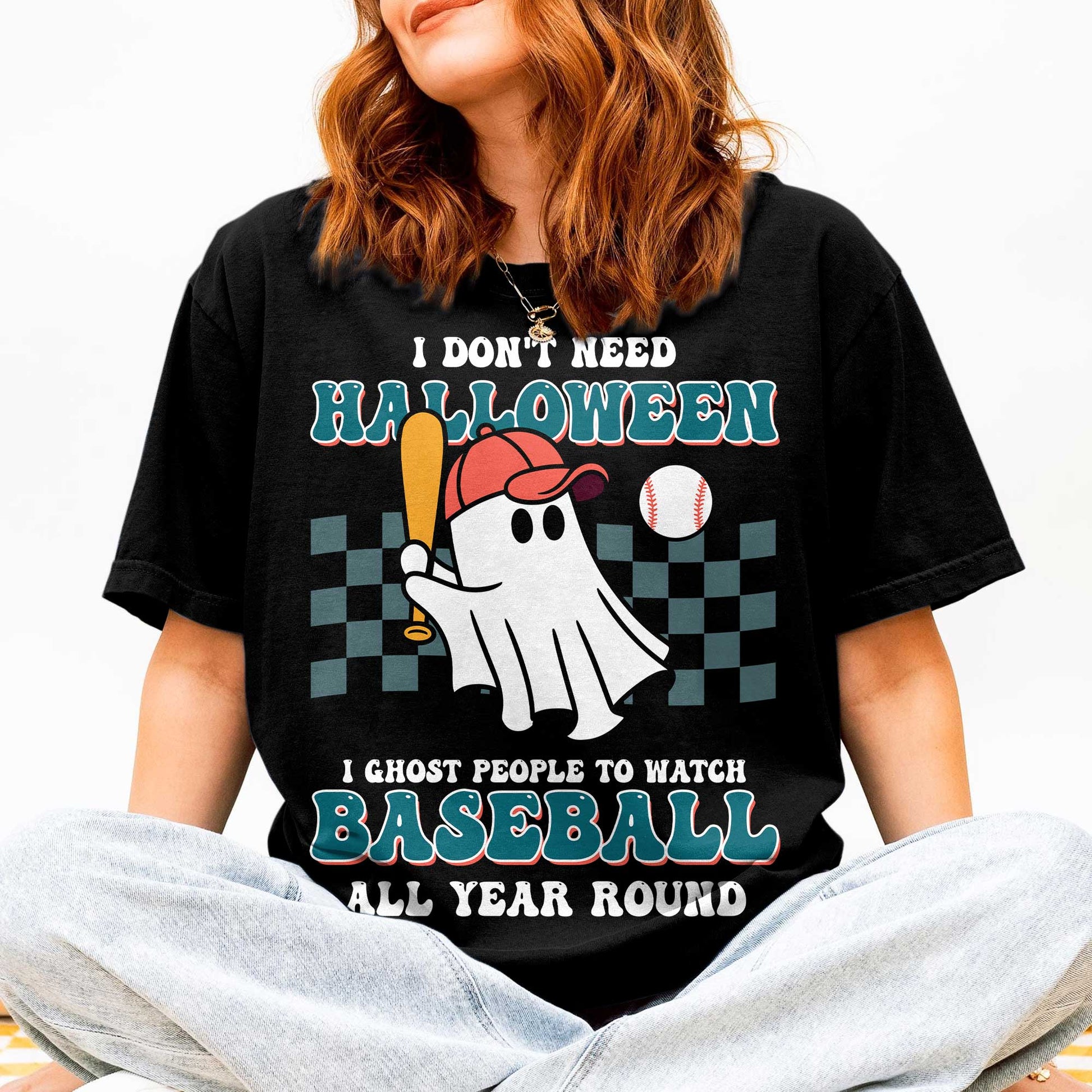 Ghost People All Year Round Black White Baseball Halloween T-Shirt