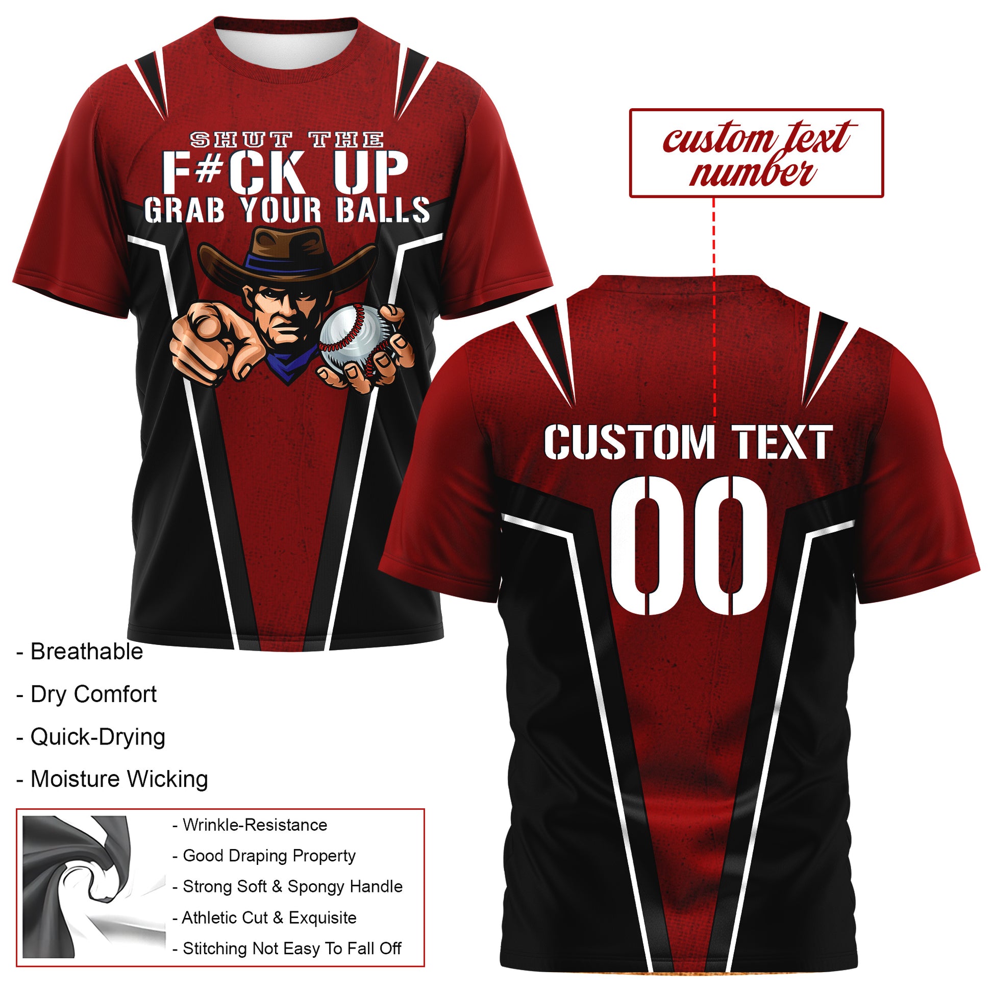 Go Grab Your Balls Custom All Over Print Baseball Black and Red T-Shirt