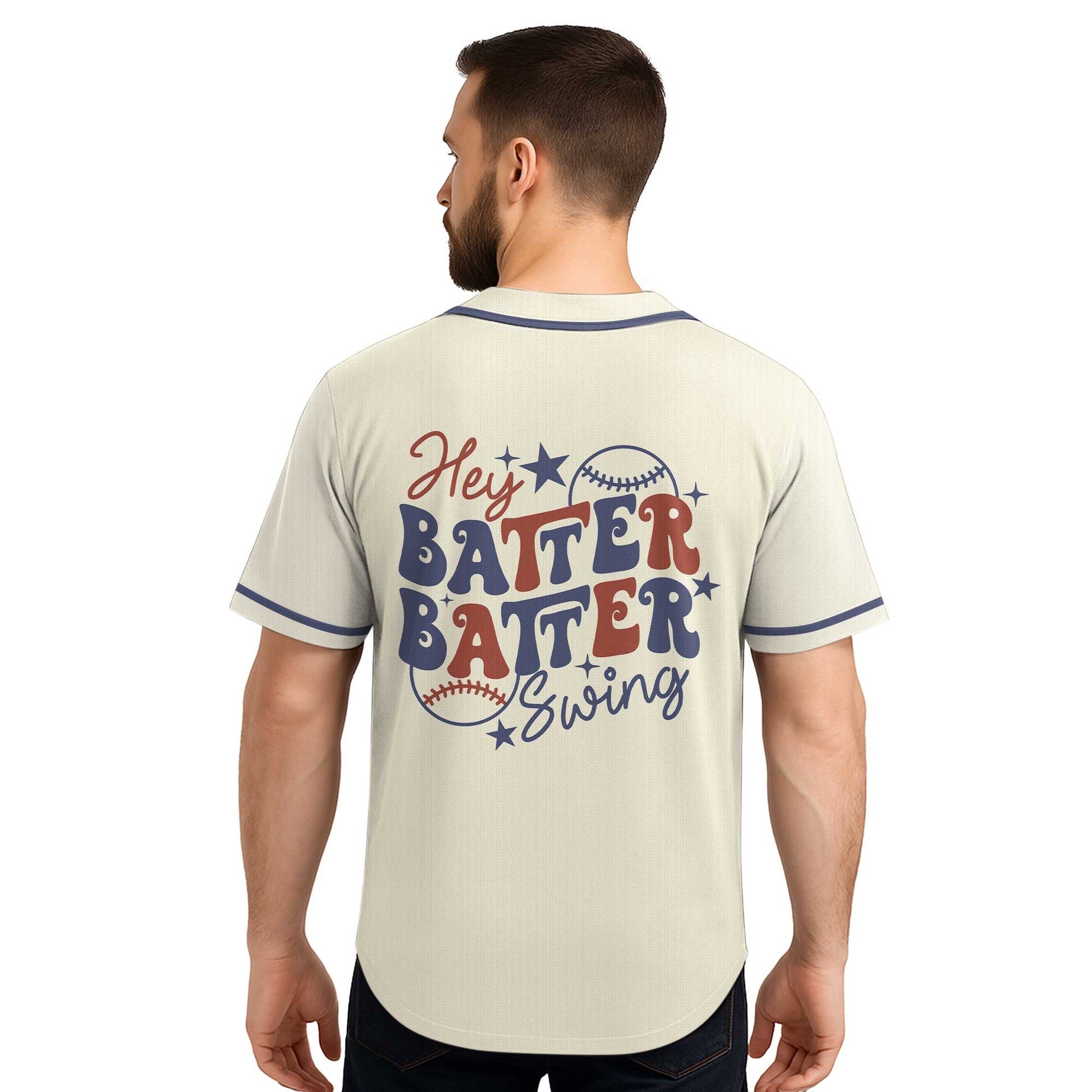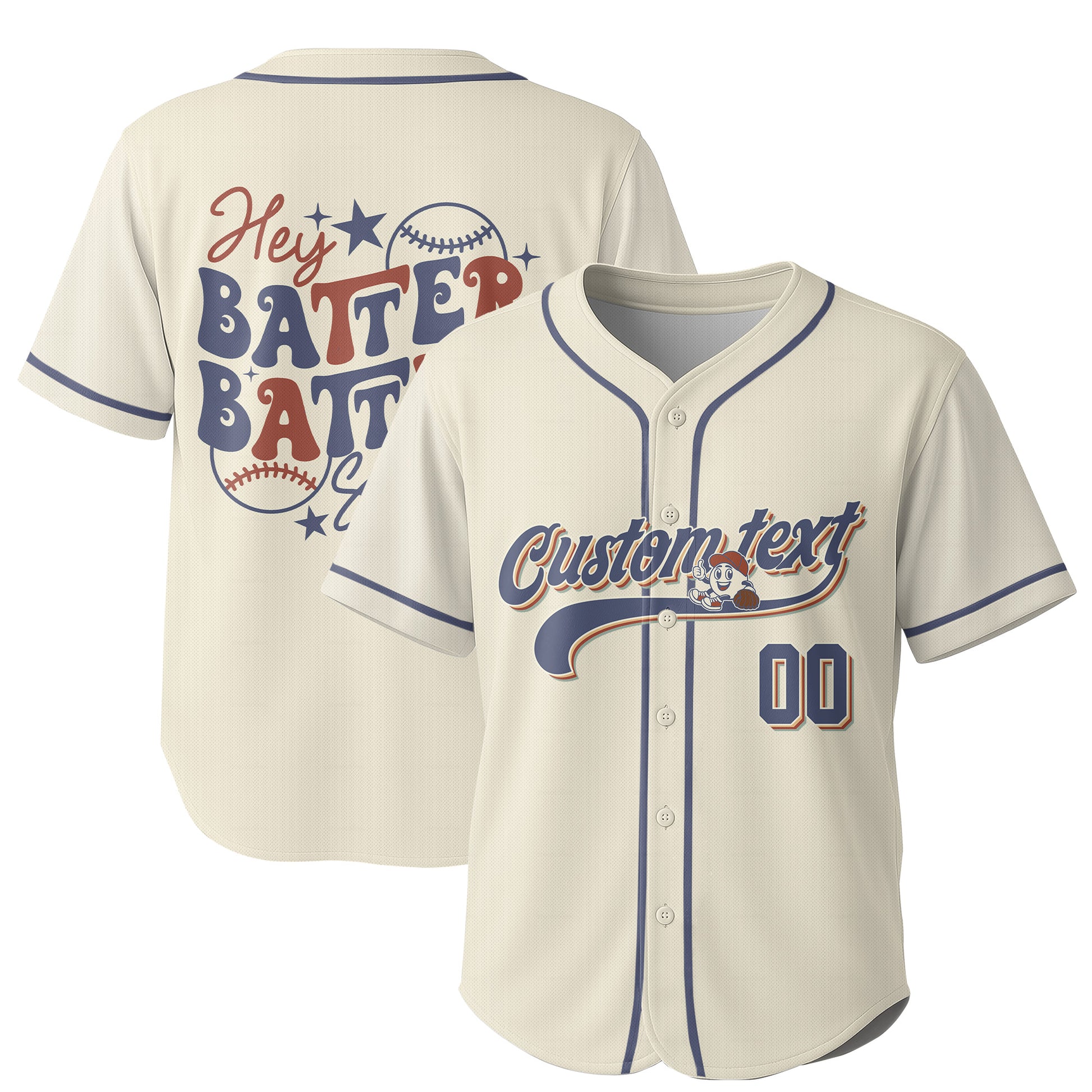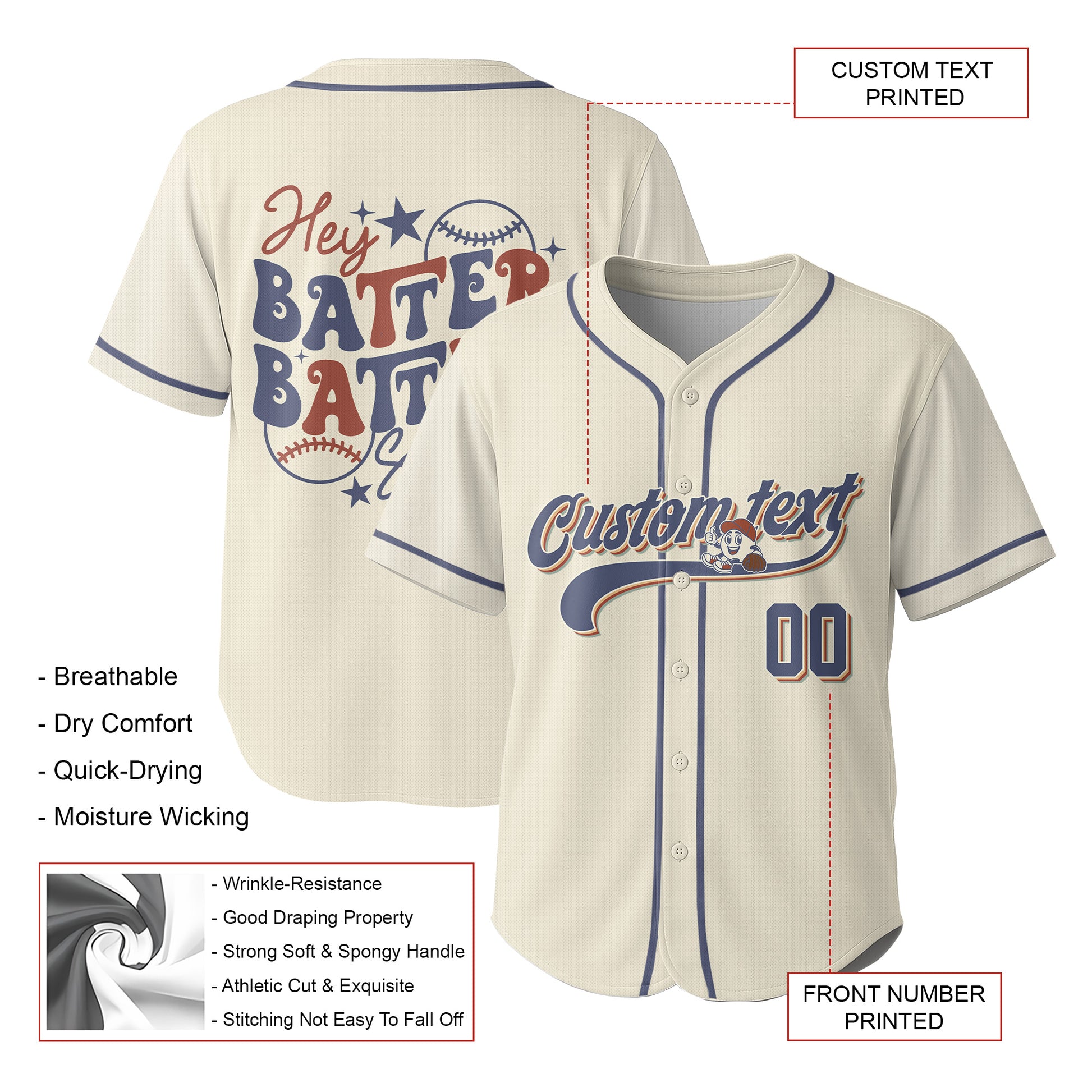 Hey Batter Batter Swing - Custom Cream Navy Baseball Jersey