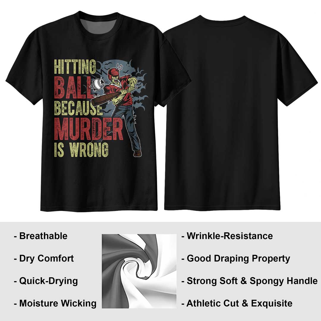 Hitting The Ball Black White Baseball Halloween T-Shirt