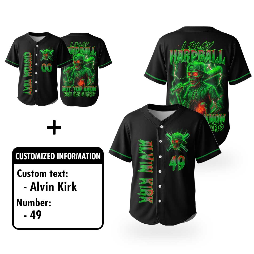 I Play Hardball - Custom Black Skull Baseball Jersey