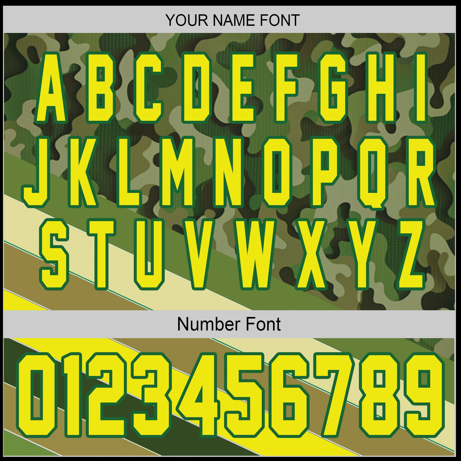 Custom Camo Baseball Jersey with Green-Yellow Stripe Accents
