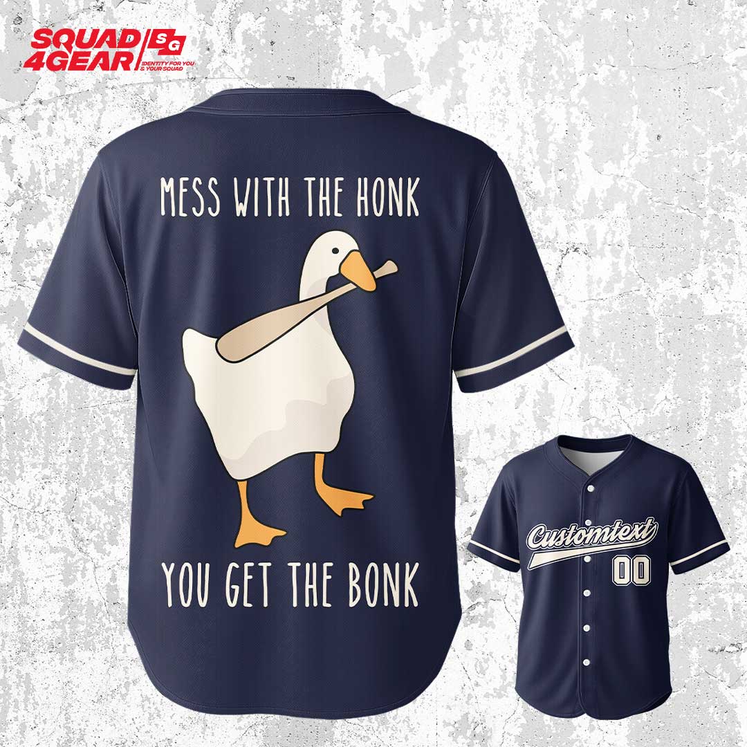 Mess With The Honk You Get The Bonk - Custom Navy White Baseball Jersey