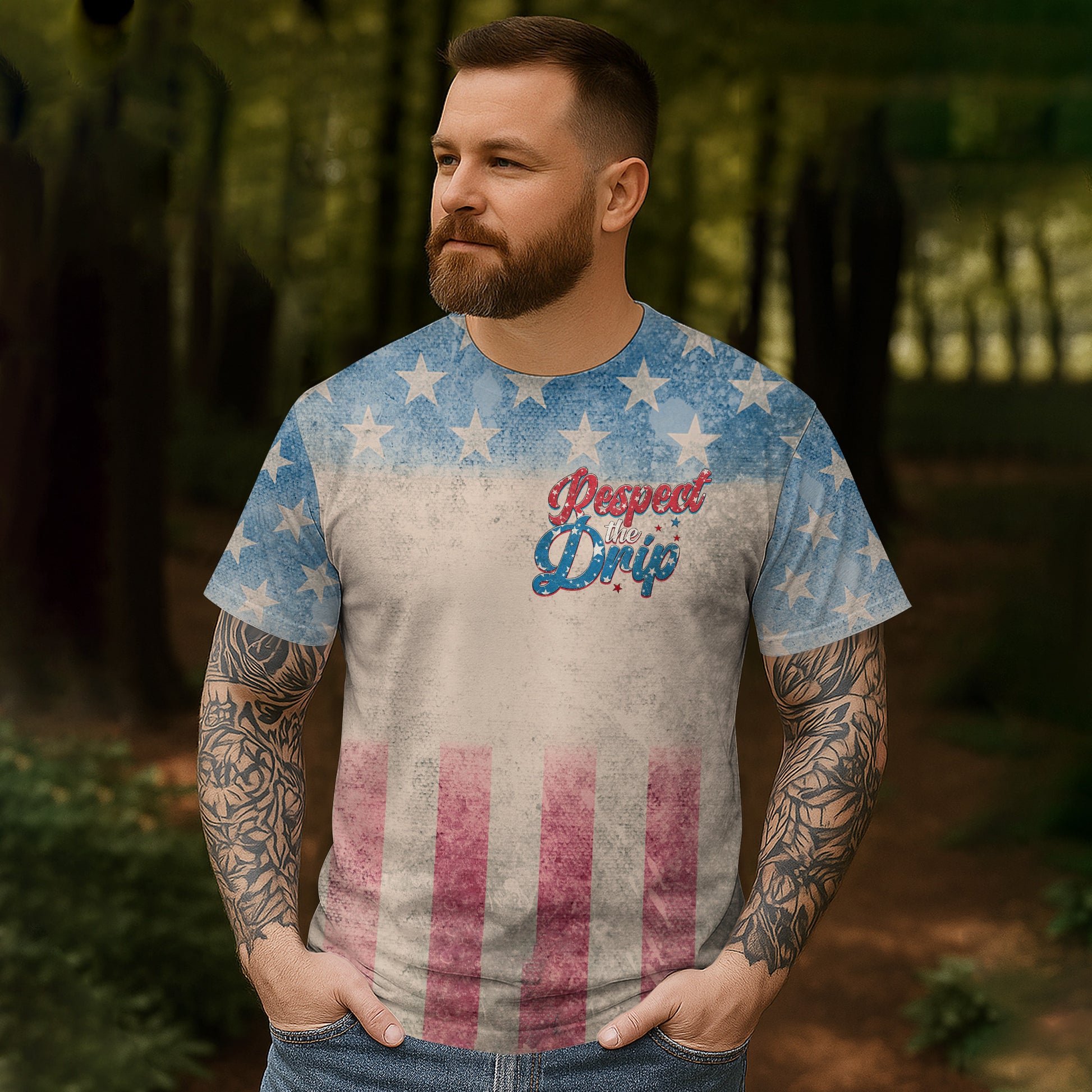 Respect The Drip All Over Print Fourth Of July T-Shirt