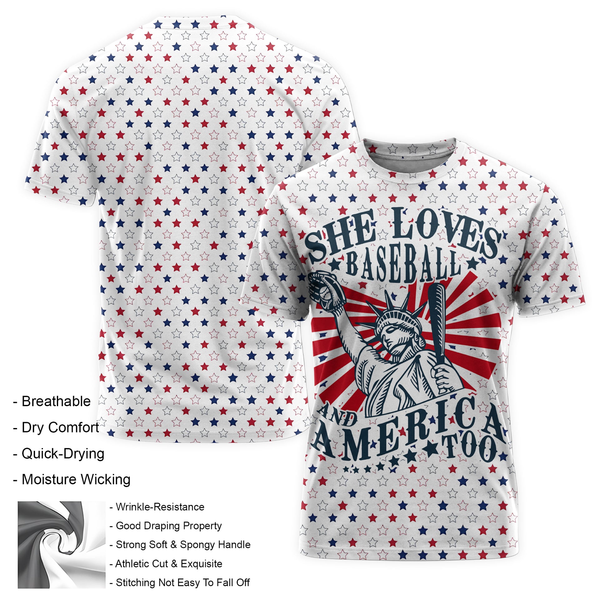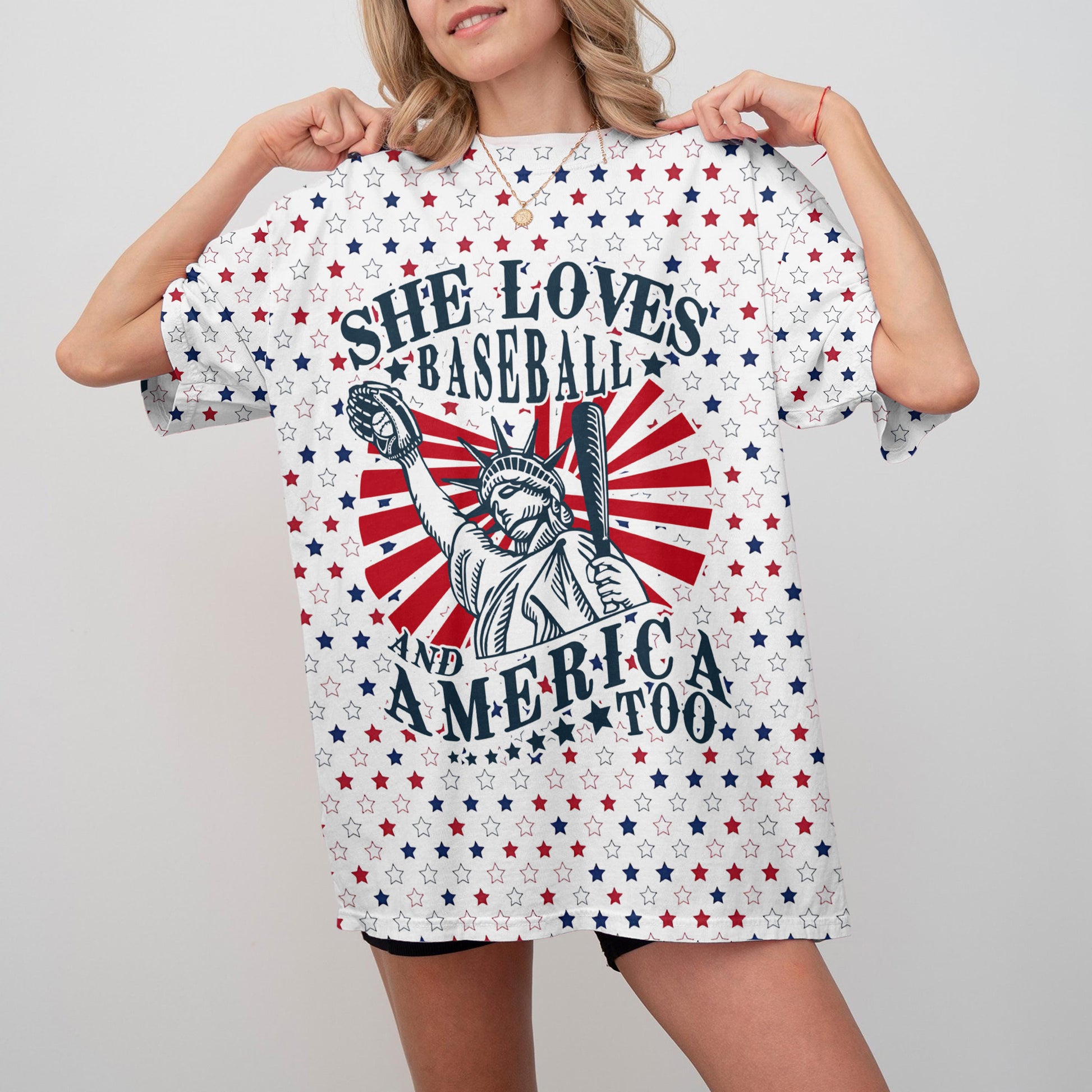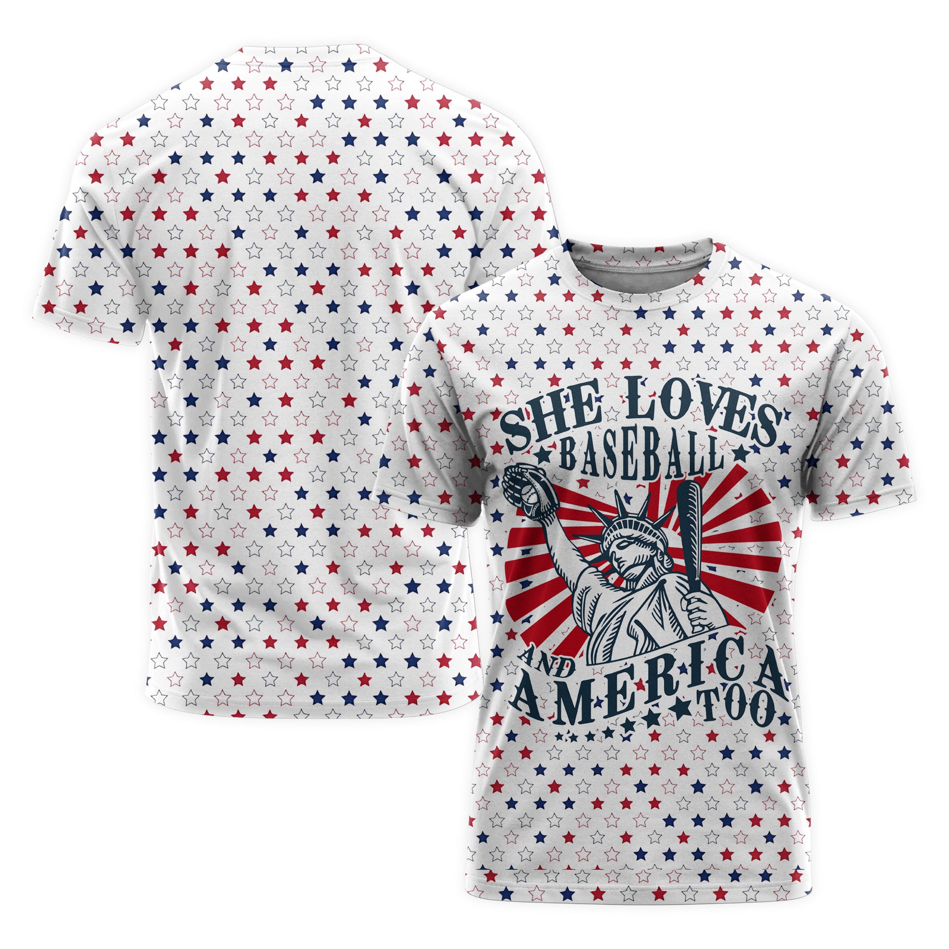 She Loves Baseball And America Too All Over Print Baseball T-Shirt