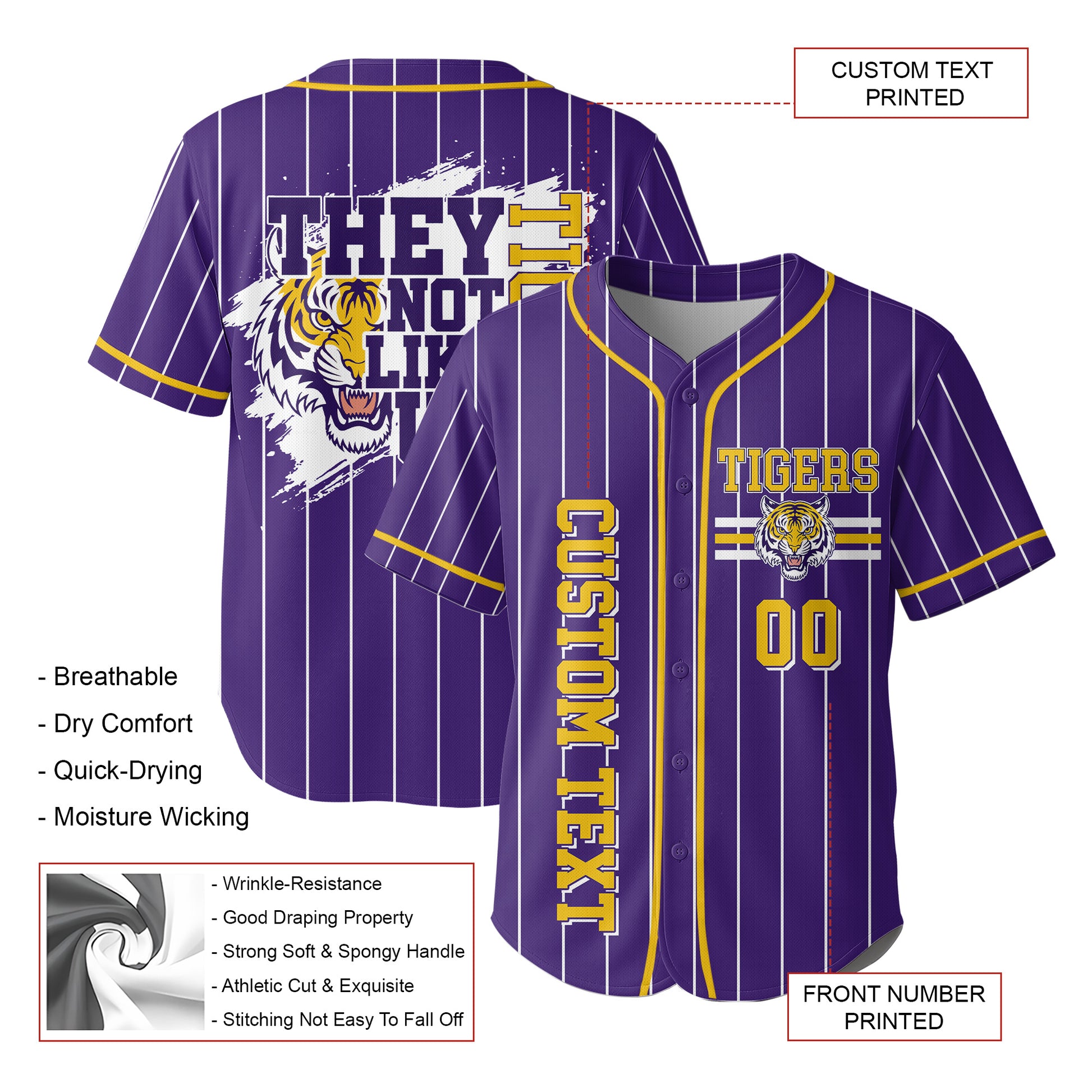They Not Like Us Tigers - Custom Purple Yellow Baseball Jersey